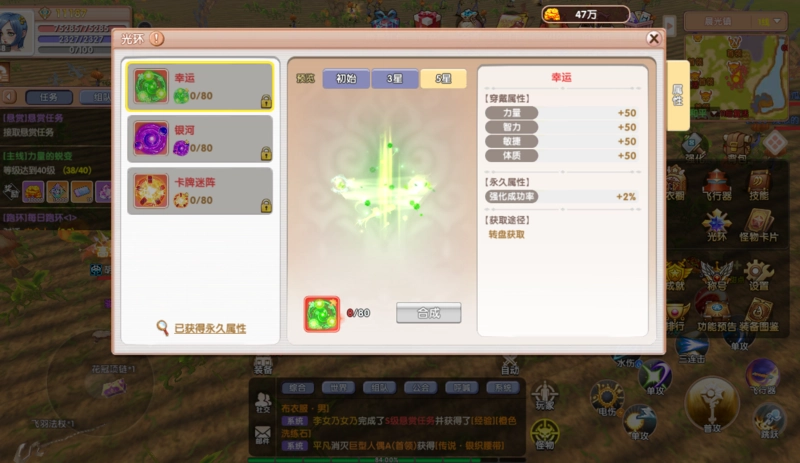 集齐80个该碎片,能够激活“光环 - 绿野仙踪”,也能用于“光环 - 幸运”的升星。