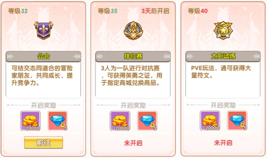 35级:排位赛(3V3竞技模式,参与可赢取珍稀奖励)