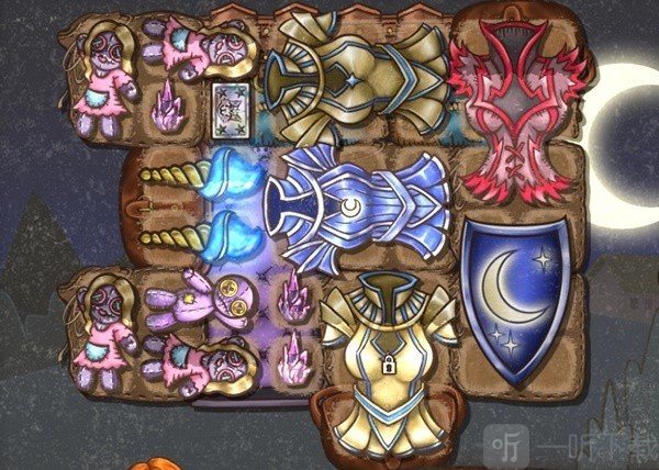 这套打法是跟别人学来的。之前玩灯火法排位,觉得自己运气爆棚,结果遭遇这个乌龟收割者,连对方的盾都打不破。排位里两大主流流派,灯火法和兽王猎,即便运气好,恐怕都比不过这套收割者乌龟流。前期刷魔法火把的各种配件,遇到会员卡就拿,能提高出神圣甲的几率;碰到魔法球直接拿,看到神圣甲、紫水晶果断锁住,抱抱小姐也拿下,盾牌拿一个,两个的话看情况,打折的木甲也可以要。接着用魔法球合成月光甲和月光盾。要是啥都没刷到,就开格子,需要很多格子。