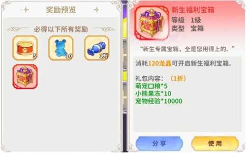 3、记得打开背包中性价比极高的新生福利宝箱呀~