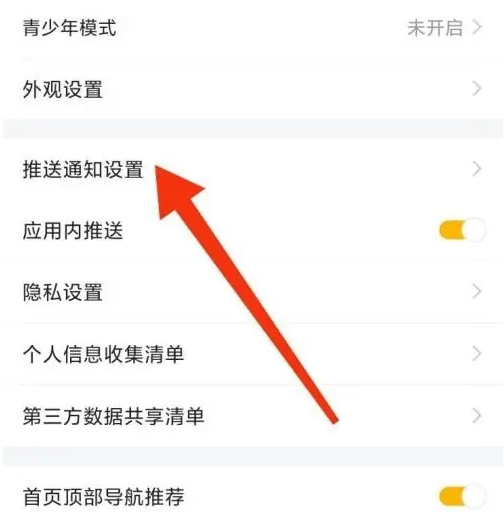 第二步:进入设置页面后,点击【推送通知设置】,具体位置如图所示。