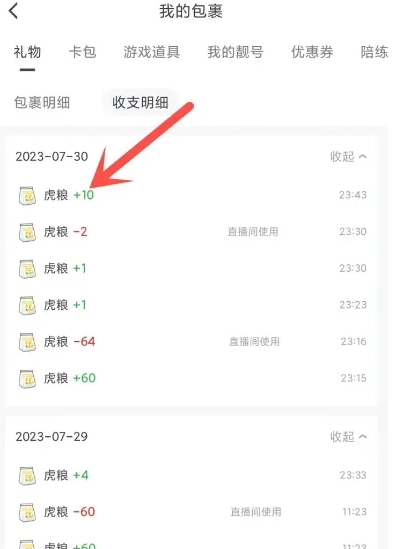 便可查看虎粮收支记录。