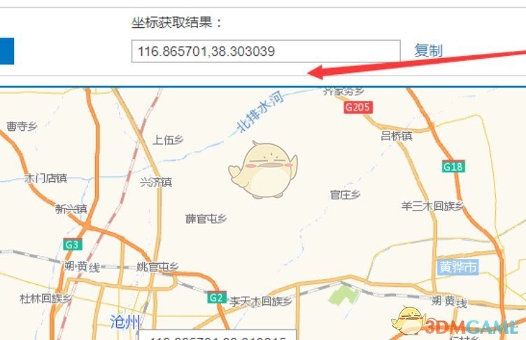 4、观察地址栏,其前半部分的数字为经度数据,后半部分则是纬度数据。