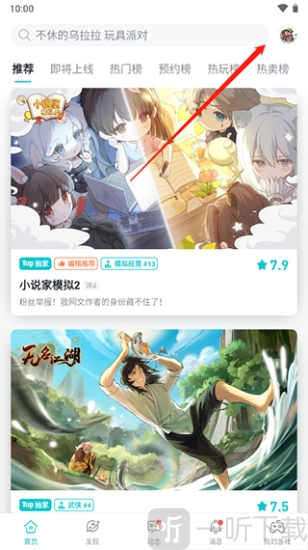 1. 安装taptap手机版本后,打开该软件,进入首页。