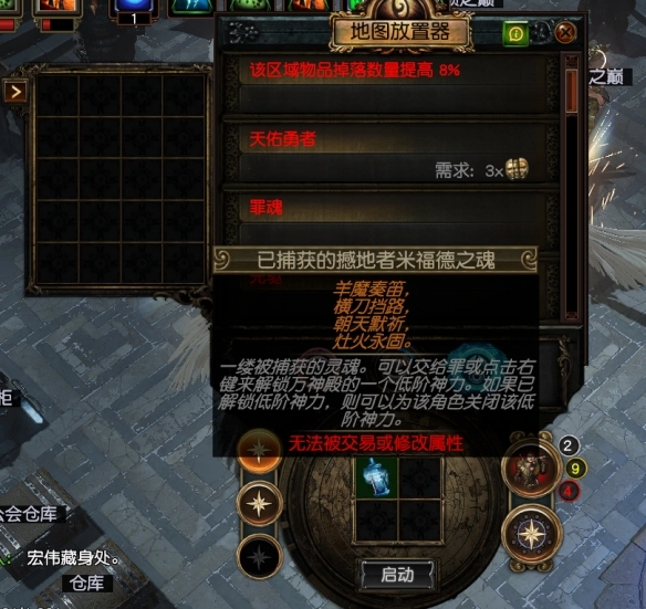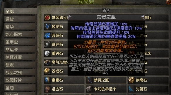 购买禁灵之瓶后,挑选你打算抓捕boss的地图。(例如撼地者米福德需前往寒顶之巅,该地图无需在意地图阶级,只要名称正确即可)