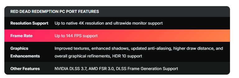 另一方面,《荒野大镖客:救赎》的PC移植版本堪称顶尖水准,它支持最高144 FPS的游戏画面帧率,同时还包含了其他众多优化内容,这让它在体验上显著超越了该游戏的其他所有版本。