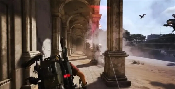 外形酷似放大版“大黄蜂”,但危险程度呈指数级上升。一旦被它锁定,必须立刻寻找室内掩体——它会周期性发射火箭弹,一发即可清空护盾与大半血量,爆炸还有大范围溅射伤害,翻滚都难躲避。