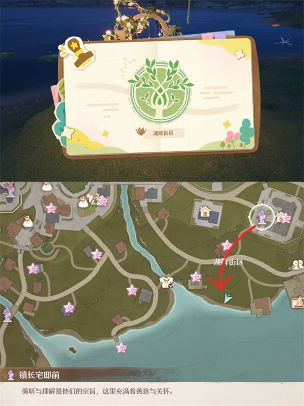 具体路线:在大许愿树广场盖完章后,直接朝着码头方向跑去,途中经过铺有野餐垫的草地时,会看到一个十分显眼的NPC。