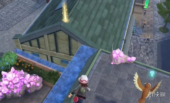 4、借助滑翔降落到对面的屋顶,捡起宝可梦球后就能得到铁壁的招式学习器。