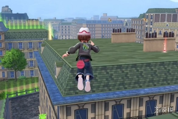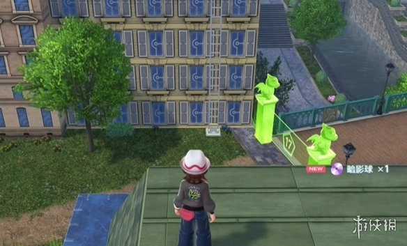 玩家需要先前往地图上翡绿6号街区的正下方位置。在该点位附近,玩家能看到一个梯子,顺着梯子爬上屋顶后向左移动,借助滑翔落到对面的屋顶上。之后,玩家只需捡起屋顶上的金色宝可梦球,就能获得暗影球的招式学习器了。