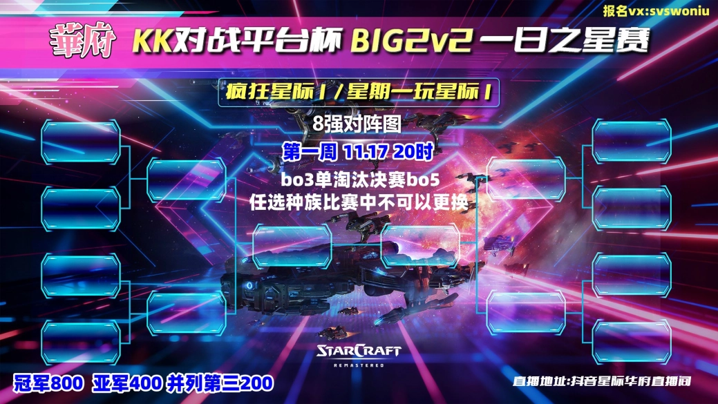 1首届KK“星期一玩星际1”巅峰群殴赛将于11月17日20点燃情开启!这场由KK冠名的“最后一场局域网”群殴赛事,汇聚了国内8支顶尖2v2战队同台较量,选手们可自由选择种族、尽情发挥,共同争夺“星期1群殴之王”的荣誉称号,以此致敬那段属于星际经典对战的难忘时光。