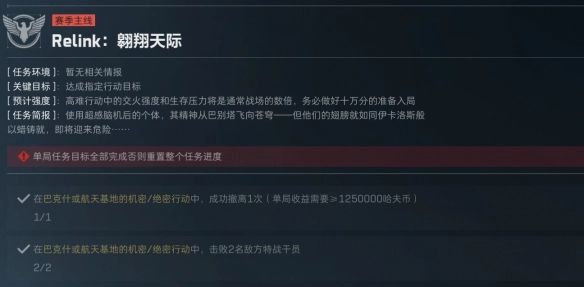 因为两个任务都是失败后会重置,所以如果想完成“翱翔天际”这个任务,建议击杀目标后找个安全的地方躲起来,等其他玩家差不多都离开后再出来搜刮物资,凑够125货币确保能撤离(如果大家有击杀邪修或者快速凑钱的其他方法也可以分享)。