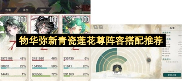 伤害输出方面:借助洛神赋图的加成效果,青瓷莲花尊与队友能够轻松达成百穿的目标。