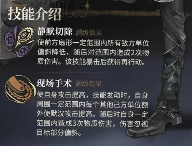 默汉的两个技能设计得挺有意思的,技能描述看起来确实很有威慑力——技能一不仅有大范围伤害,还能让范围内敌人降低偏斜,更关键的是暴击后还有再行动效果……要是这套技能组合能保留到正式服,维一觉得默汉的强度下限就稳了,现在就看它能不能顺利活到正式服上线了。