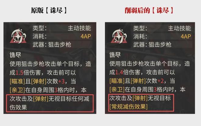 最后那次削弱的力度简直是毁灭性的——直接针对了奥德莉最得意的【诛尽】技能。关键的改动在于,把技能原本“无视任何减伤效果”的特性,调整成了“仅无视常规减伤效果”。关于“常规减伤效果”具体包含哪些特性,大家可以参考以下说明。