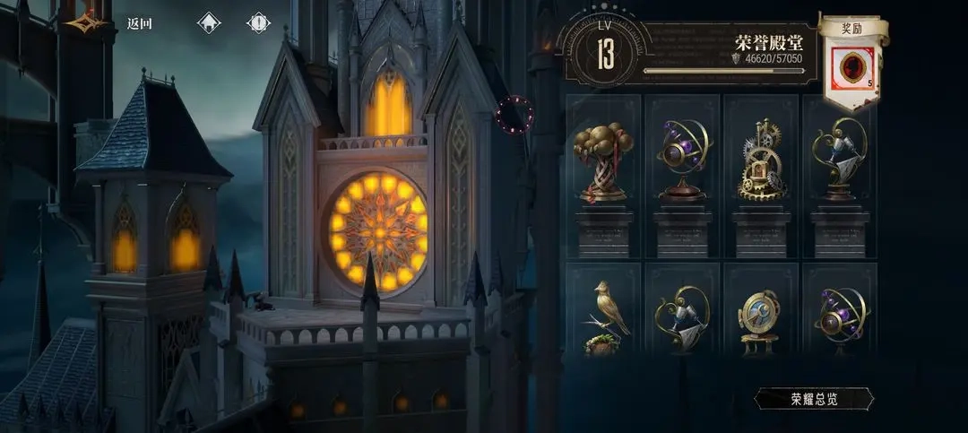 主界面古堡里面荣誉殿堂,点击荣誉总览