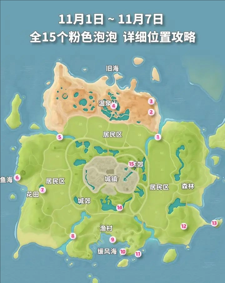 心动小镇11月1日-11月7日粉色泡泡位置汇总