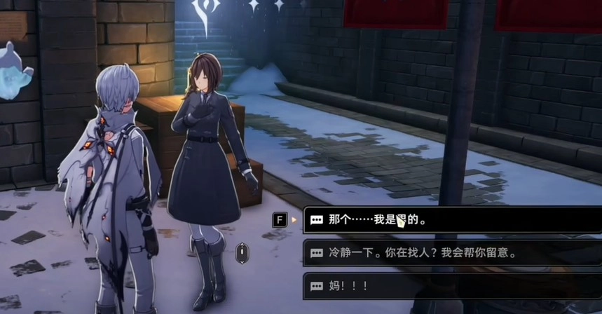 首先,我们需要前往冰湖城的东区,找到NPC阿尔莎并与其对话,在对话选项中选择“冷静一下”,此时共情值会相应增加,这一步很关键,务必完成,否则后续部分对话可能会遇到阻碍。对话结束后,系统会自动为我们接取一个名为“消失的少女”的任务。