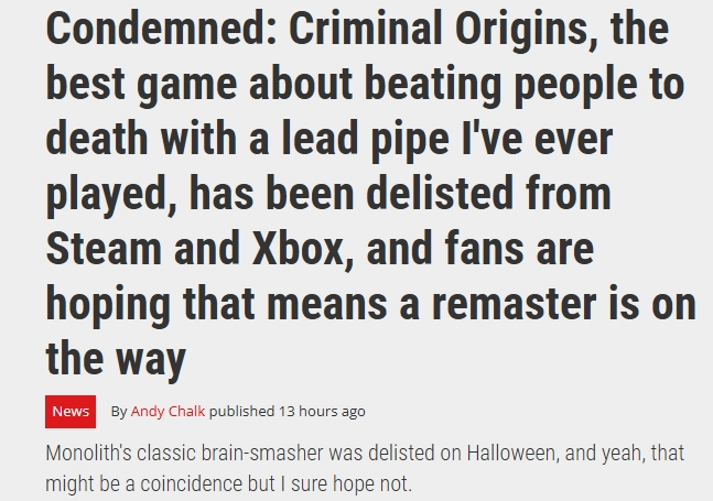 一款拥有20年历史的经典恐怖游戏《死刑犯:罪恶起源》近日在各平台突然下架停售,引发了不少关注。业内人士推测,官方或许正计划对其进行重制,让我们共同期待后续消息。