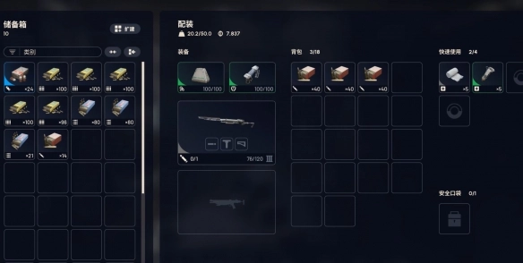 武器选用生铁材质,备上3组子弹,再额外多带些药品和护盾就能出发了。