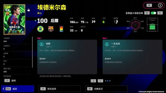 埃德米尔森增能属性为【抢断 +3】,铲球和身体接触的加强,让他能为球队的中场保驾护航!