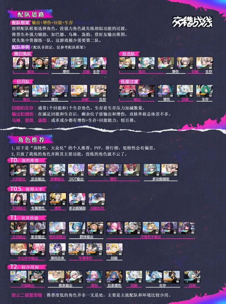 在交错战线的策略对决里,组建一支能力均衡又高效的队伍是赢得胜利的核心要素。科学的角色组合不仅可以激发远超单个角色战力的协作效果,还能更好地适应游戏里多变的挑战场景。本文将结合角色的技能机制与实际战斗表现,为您剖析围绕“输出、增伤、回能、生存”四大核心的组队思路,并给出明确的培养优先级建议,助力您在资源有限的条件下,打造出竞争力最强的阵容。