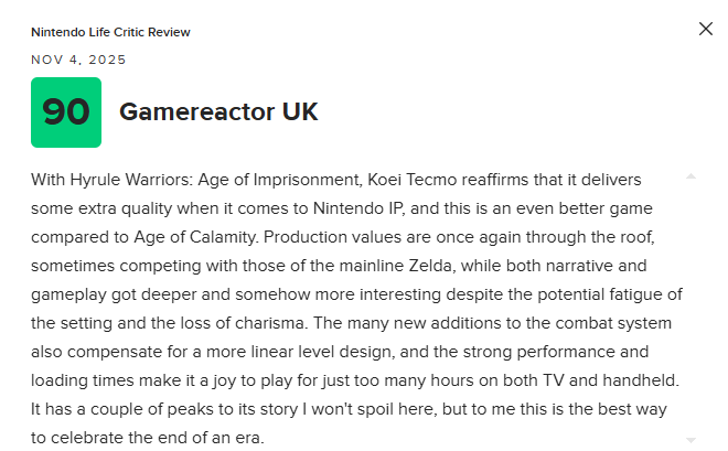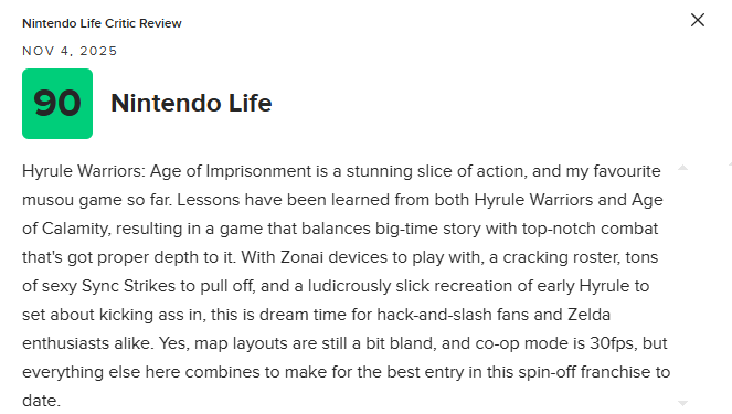 Nintendo Life 评分90分: