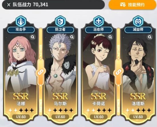 3、配队思路:防卫者+攻击手+治愈师+支援者/减益师