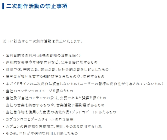 另外,在卡普空官方举办的庆典活动里,存在官方授权当日二创版权的情况。