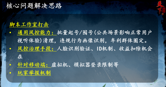 另外,在大家最关心的打击工作室领域,《天下贰经典版》已经确定会进行综合治理。治理手段包括监控识别异常批量起号行为、行为画像圈定、虚拟机及模拟器登录限制、人脸识别等风控治理手段等。