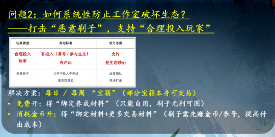 同时,在《天下贰经典版》的周汇报上,明确了会严格区分“恶意刷子”和“合理投入玩家”两个群体。