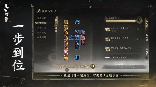 一步到位系统全面迭代,角色一键飞升,天域武器、大禹首饰、70世界套等免费获取,真正省去养成步骤,更能专注战斗,不论是是阔别大荒已久的回归玩家,还是新人玩家都能轻松上手;