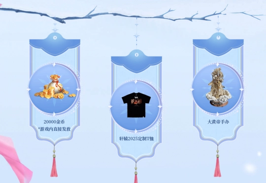血盟领袖带领团队夺得本服群雄豪战冠军,除了游戏内直接发放的20000金币外,还能额外获得2025轩辕定制T恤与大黄帝手办!