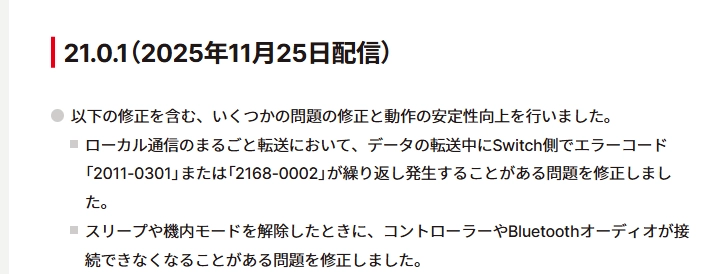 11月25日,任天堂今日宣布Switch 2的最新系统更新21.0.1已正式上线。此次更新主要针对影响玩家体验的已知问题进行了修复,官方建议玩家尽快完成更新,以获得更为流畅的使用体验。