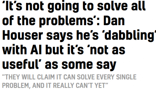 不过Dan Houser也提到,尽管AI企业都很乐意让更多工作室了解到AI的优势,但实际情况是真正有价值的内容并不多,AI完全不可能解决所有问题。