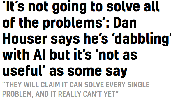 不过Dan Houser也提到,尽管AI企业都很乐意让更多工作室了解到AI的优势,但实际情况是真正有价值的内容并不多,AI完全无法解决所有问题。