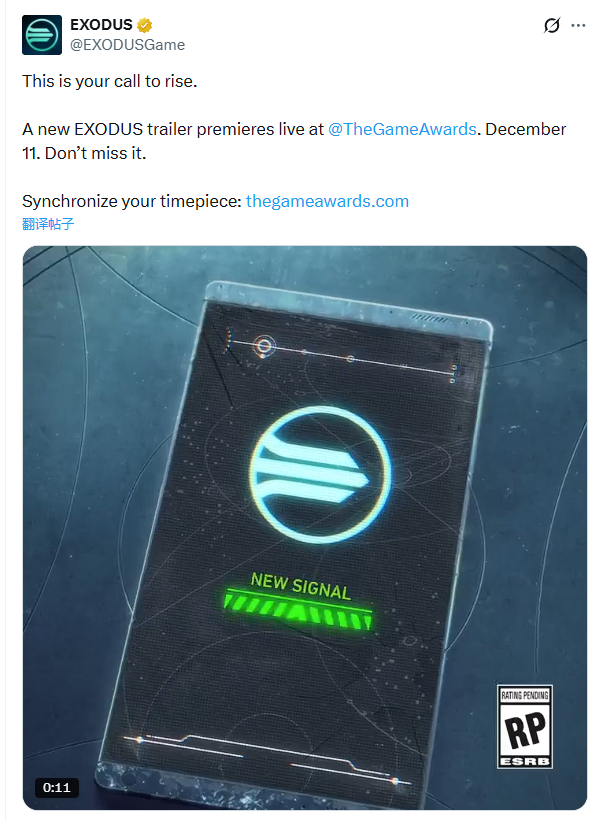 由前《质量效应》核心团队成员创立的Archetype Entertainment工作室正式宣布,旗下3A级科幻射击新作《Exodus》的全新剧情预告片,将在2025年12月11日举办的TGA颁奖典礼上全球首曝,而这款游戏计划于2026年推出。