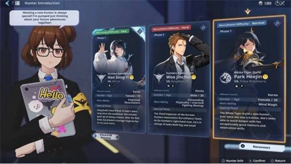 完成教程并解锁猎人公会后,就能直接获取三名免费猎人:
