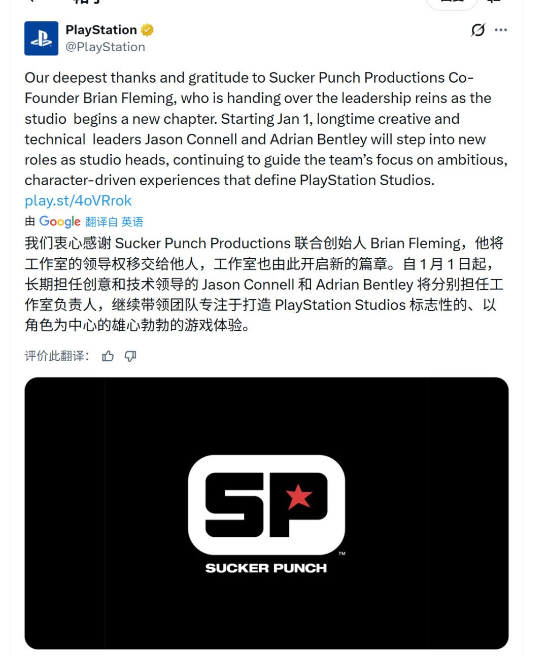 《对马岛之鬼》《羊蹄山之魂》的开发商Sucker Punch,其联合创始人兼任职多年的工作室CEO Brian Fleming即将卸任。Brian Fleming在Sucker Punch已工作30年之久。