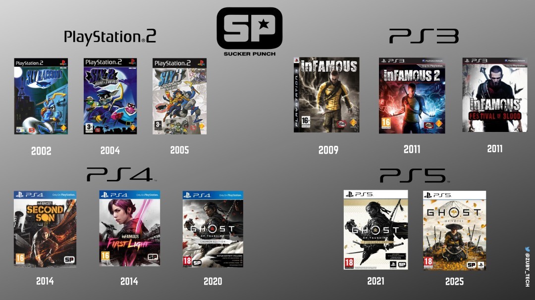 自2011年起,Sucker Punch便成为PlayStation的第一方工作室,其代表作包括《狡狐大冒险》《声名狼藉》与《对马岛之鬼》。