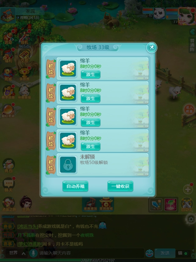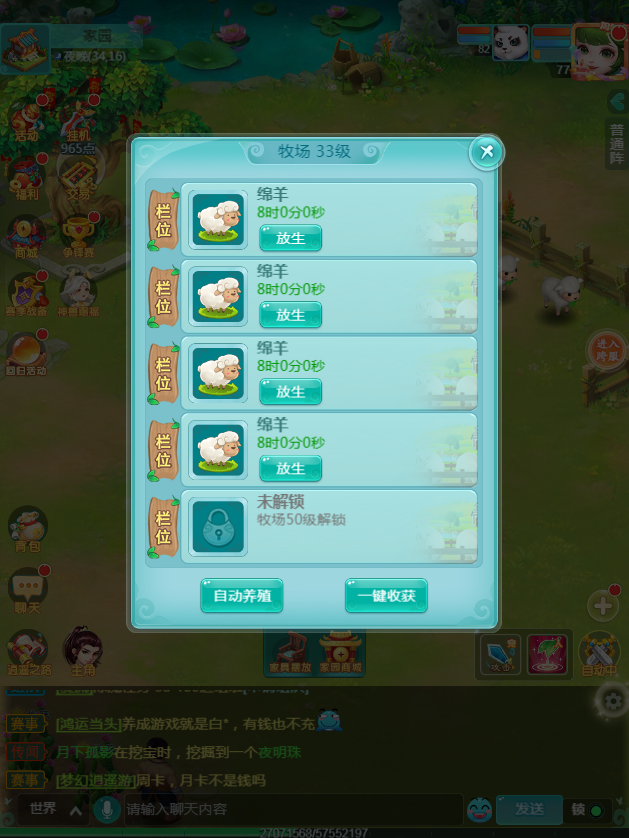 要是想更省心,可以用“一键养殖”功能,管理员就会自动帮你饲养当前等级最高的家畜。从喂养到照料,全程都不用你费心,只要静静等待时间过去,就能迎来收获的时刻。